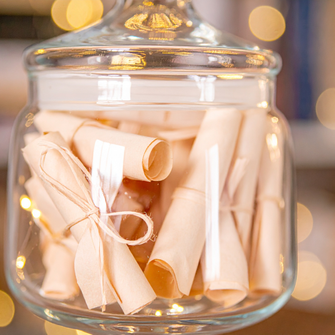 1. Schritt 1: Das Gefäß vorbereiten. Besorge dir ein schönes Einmachglas, eine kleine Schachtel oder einen anderen Behälter. Stelle es an einen Ort, an dem du es täglich siehst.